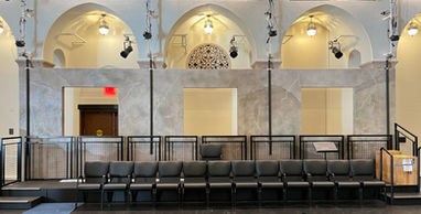 This five-panel Austrian-style curtain was constructed entirely from scrap fabrics, hand-sewn together to appear as though it had been assembled by the inmates themselves using old clothing, food sacks, and leftover materials. Unlike a traditional Austrian curtain, the panels were intentionally separated to allow for greater movement and interaction with the actors throughout the performance. In the final scene, the curtain is pulled through and placed behind the jail bars, symbolizing the inmates' escape from the asylum. Rigged with ten tie lines threaded through Austrian shade tape on each panel edge, the curtain’s lines ran up to the balcony, through eye bolts mounted on half cheeseboroughs, and back to the operating station where each line was individually labeled and tied off. This setup enabled highly dynamic control over the position and angle of each panel, supporting both visual storytelling and choreographed action.